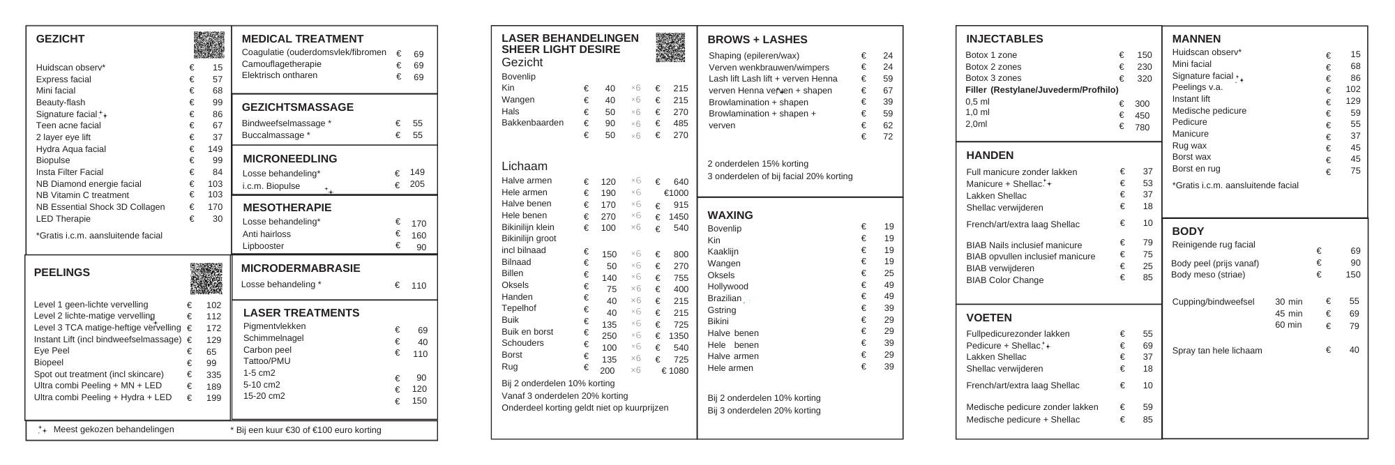 Actuele prijslijst Cotton Clinic